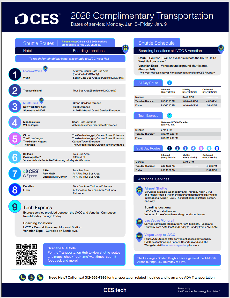Shuttles to serviced hotels are available for pickup at the following locations: