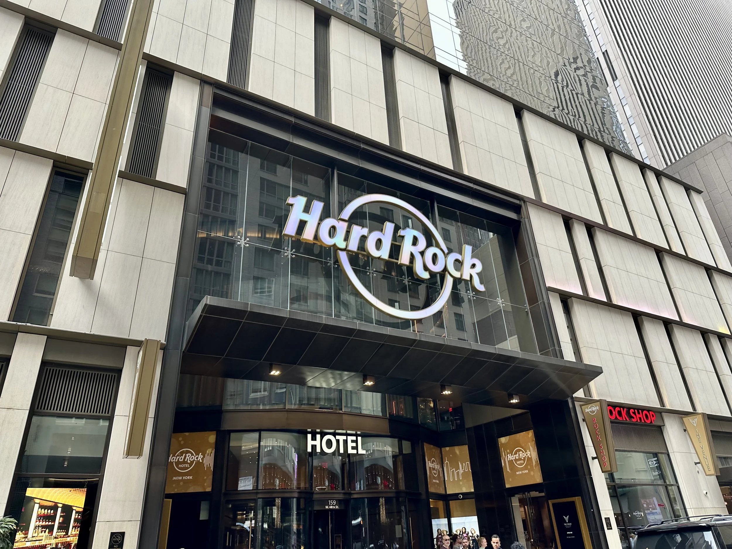 Tap on marker icons to preview shuttle stop signage and nearby hotel entrance.
